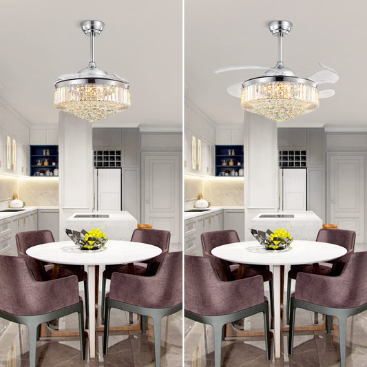 42 Inch Indoor Chrome Smart Retractable Crystal Ceiling Fan with Dimmable LED Light Included with Remote & App Control