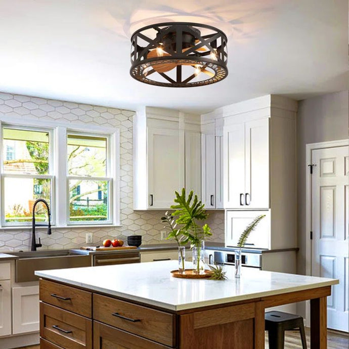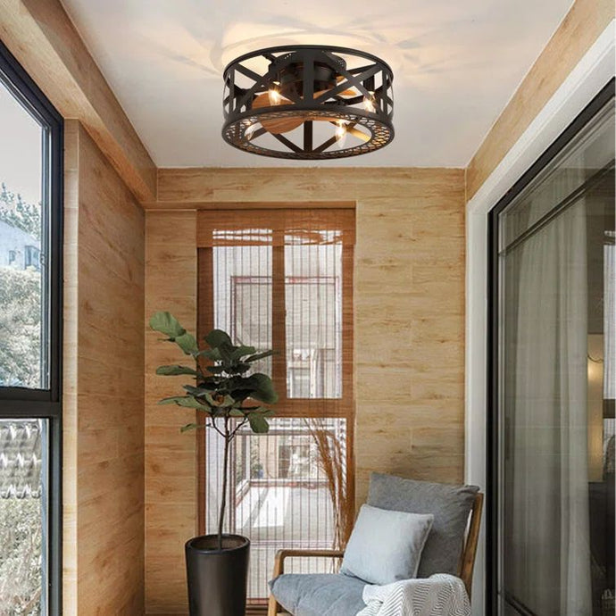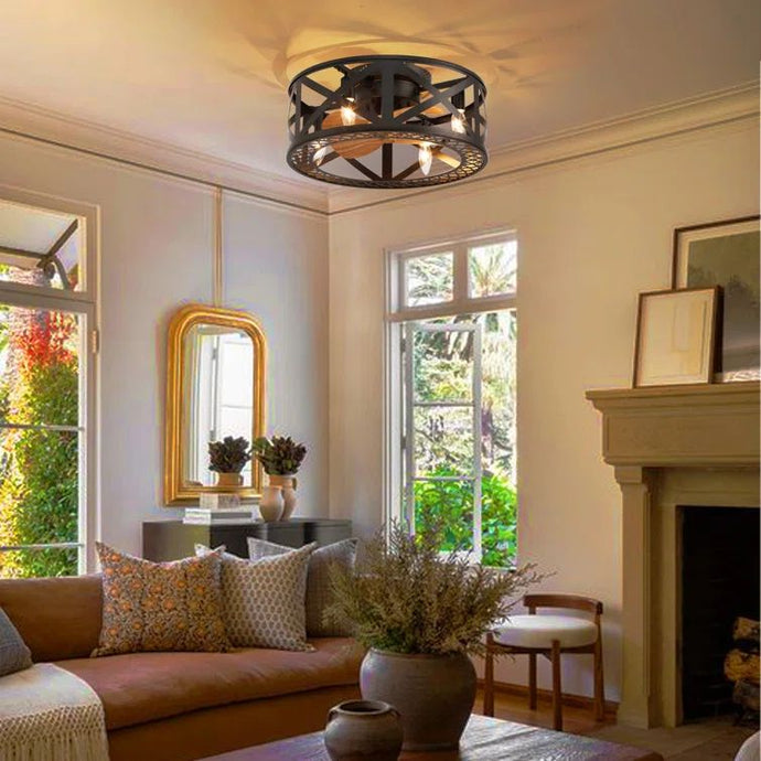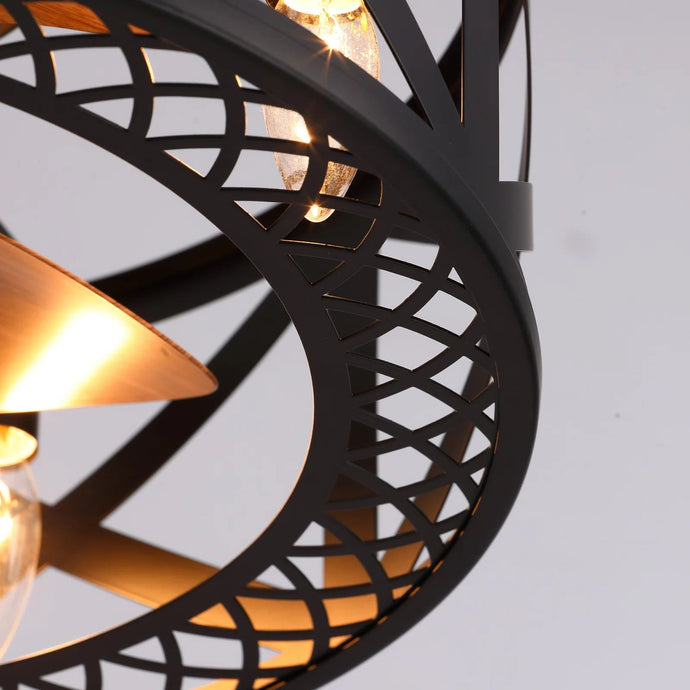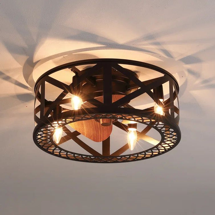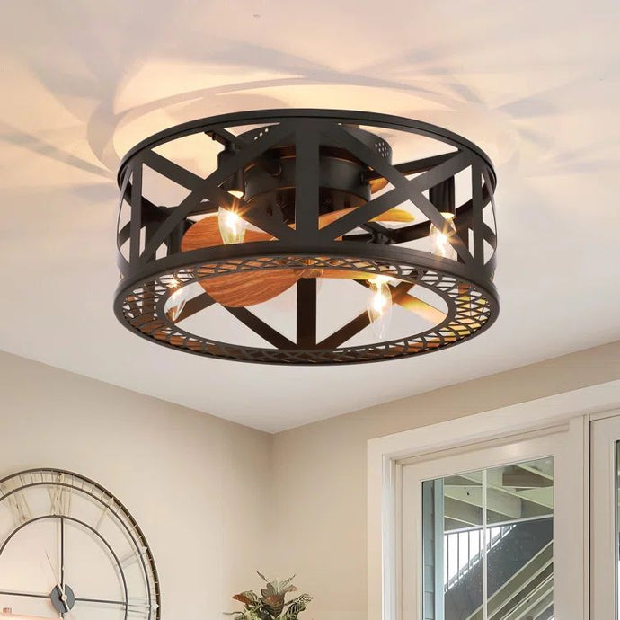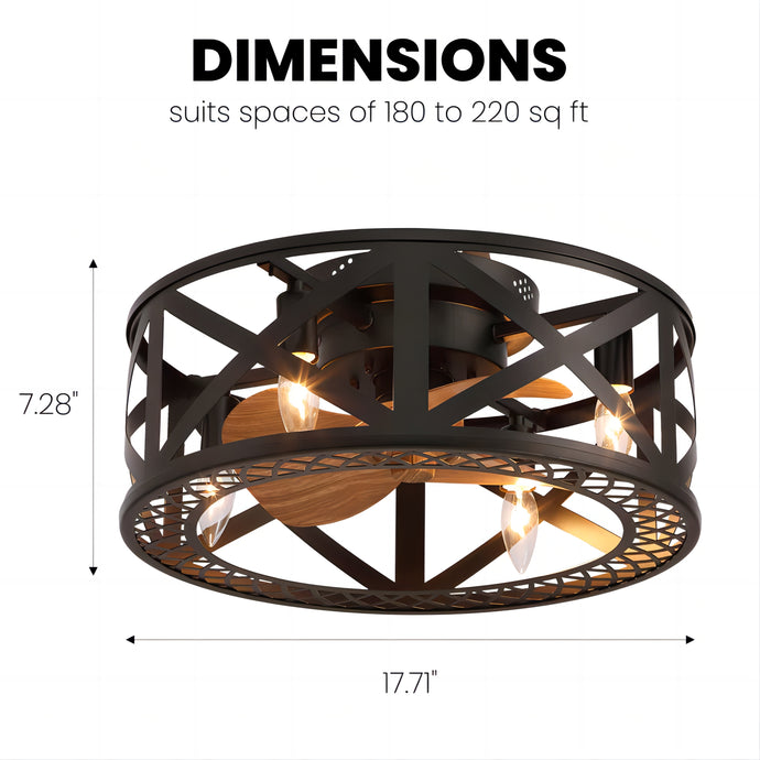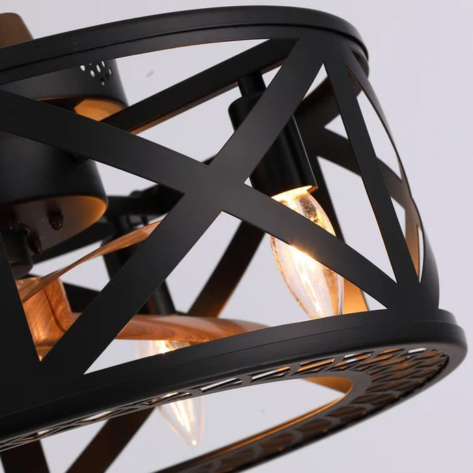 - 【Unique Design】: The industrial style is back and now you can get the same look in this black caged ceiling fan. This Industrial ceiling fan lights fixture consists of a black cage covering four lights and three wood grain blades—the perfect size for a loft, office space nursery room, or children's room.