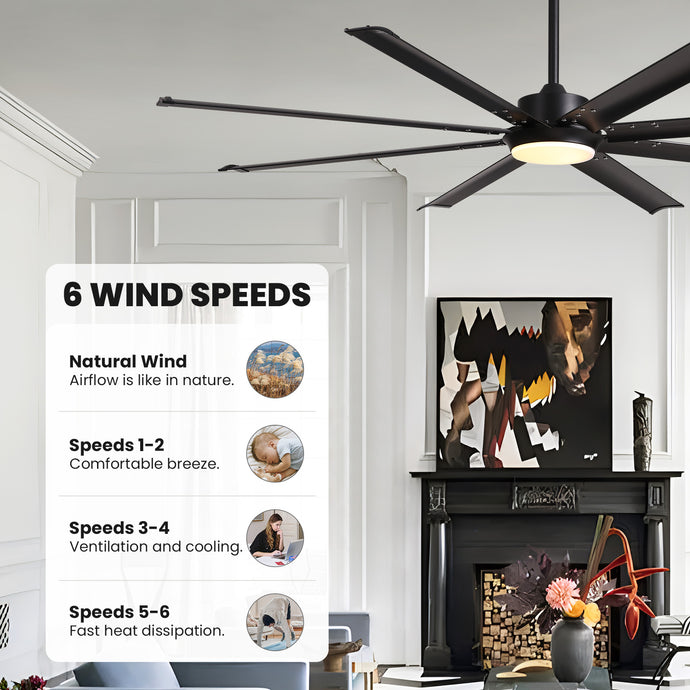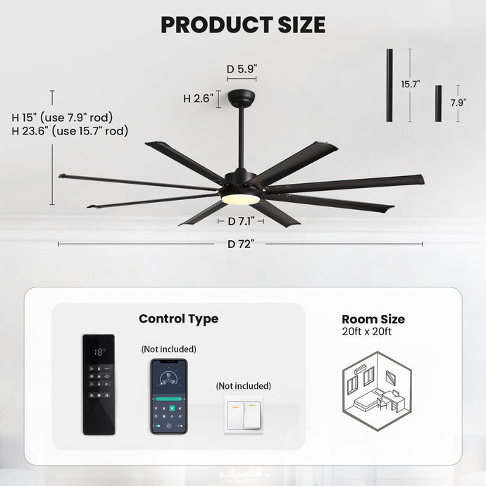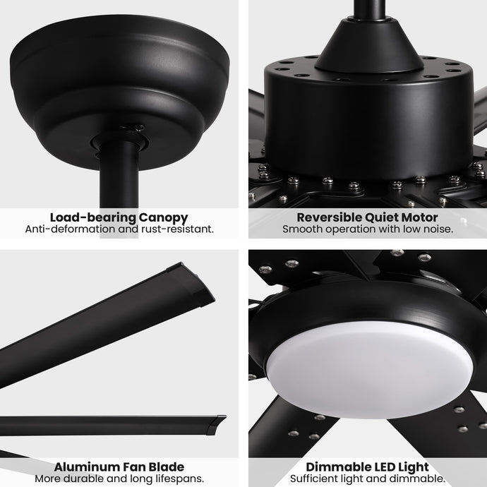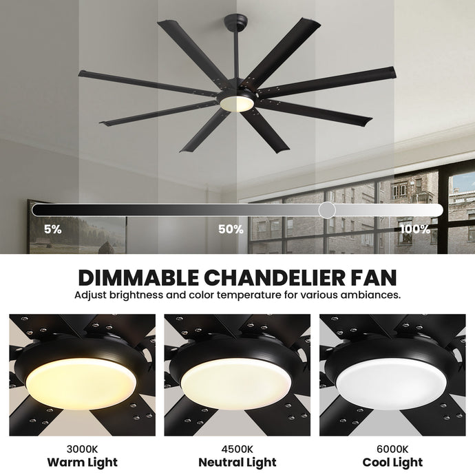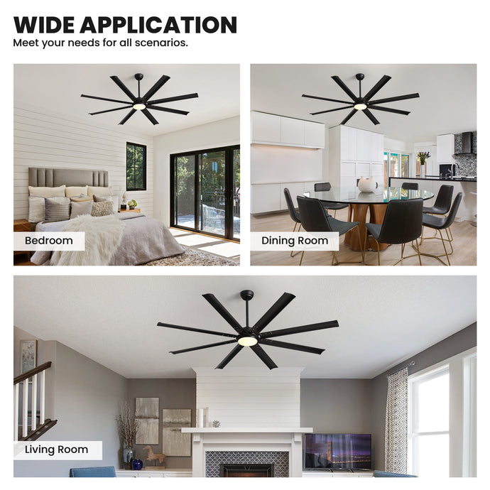 72 in. Large Black Ceiling Fan with Lights and Remote