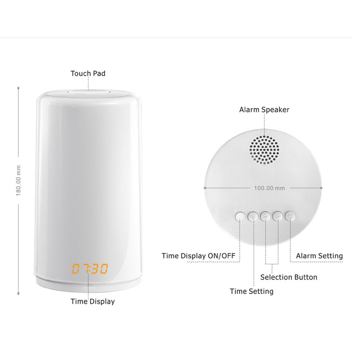 - Touch Sensor: Effortlessly control the wake-up light's settings using the touch sensor, providing a seamless user experience.