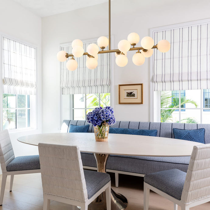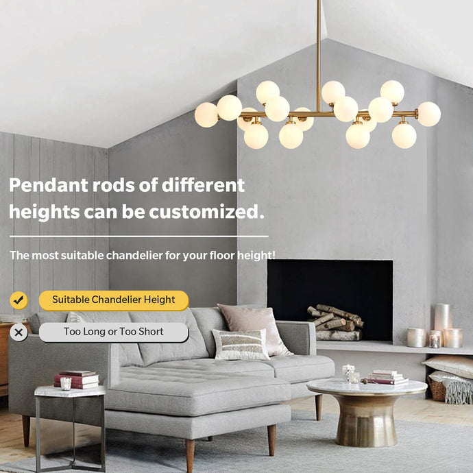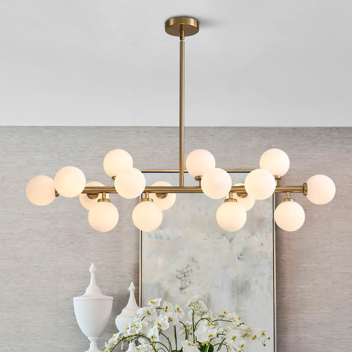 Linear Chandelier Gold Hanging Pendant Light Fixture with Globe Glass Shade Modern for Dining Room Living Room Kitchen Island Over Table 16-Light