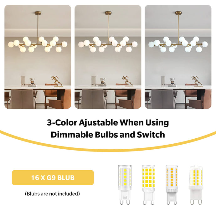 - Light Source: G9 * 16 bulbs (bulb NOT included, max 7W each bulb). LED support only. Fully dimmable when used with dimmable bulbs and a compatible dimmer switch (not included).