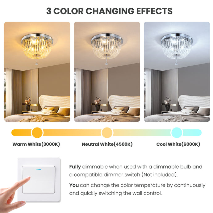 - Bulb Requirement -- Mini crystal chandeliers need 3 Max 60W E26 bulbs (Not Included). compatible with LED Edison Incandescent CFL and halogen bulbs, etc. This modern crystal chandelier is compatible with dimmer bulbs and switches(Not Included), and different color temperatures can show different effects.