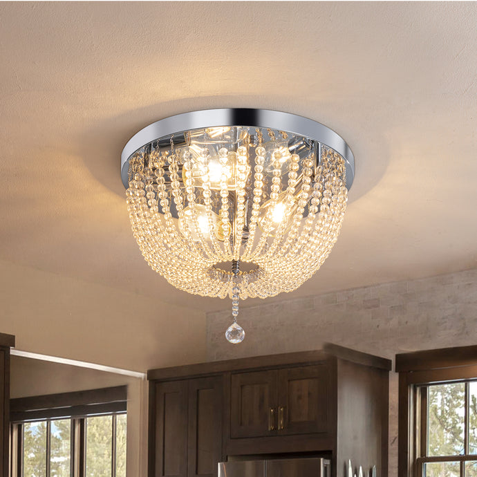- Flush Mount Crystal Chandelier -- With streamlined simplicity and classic elegance, Strings of crystal-like pearl necklaces cascade all around the light source, adding Bohemia elements to your decorated space.