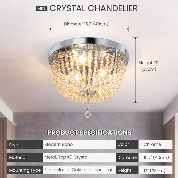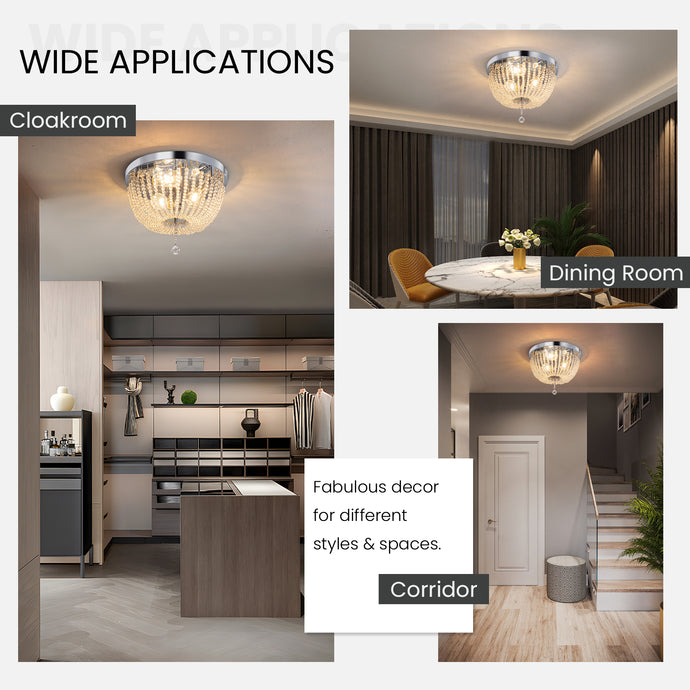 - Stylish Design -- These graceful crystal beaded and gleaming chrome mingle playfully with the elements of these fixtures. Boho Ceiling Light is perfect for the hallway, dining room, bedroom, bathroom, girls' room, foyer, and much more.