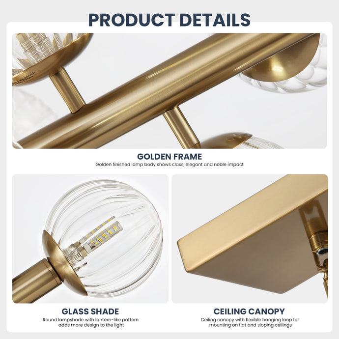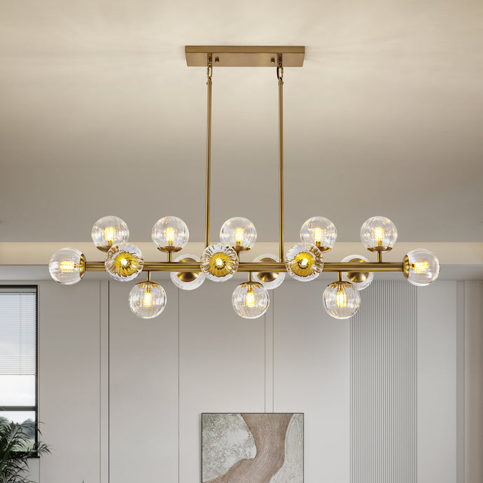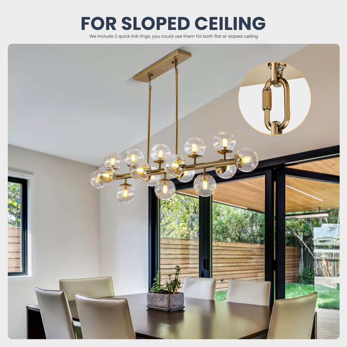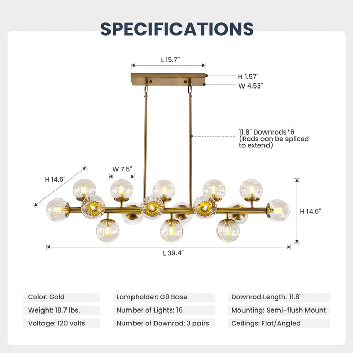 - 【Modern Luxury Fixture】: 16 lights chandelier features clear glass shade with the gold finish, which makes the chandelier full of design and absolute stunning when light turns on. This elegant chandelier light fixture, perfectly match with casual spaces, residential houses, or any commercial areas.