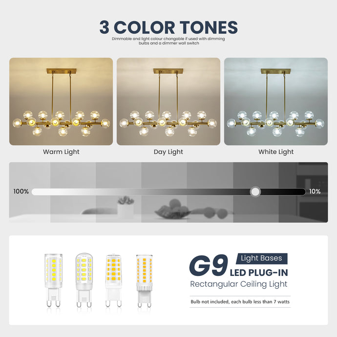 - 【Light Source】16 * G9 bulb socket, G9 led bulb can be searched online, DON'T use any halogen bulbs. (support 7 watts per bulb). Fully dimmable when used with a dimmable bulb and compatible dimmer switch.(Bulbs and dimmer switch not included).