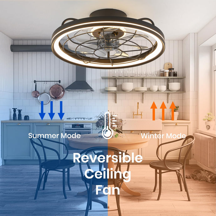 This caged fan light is made of high quality material, has three colors changing light LED, silent pure copper motor, support reversible rotation for all seasons!