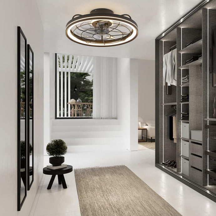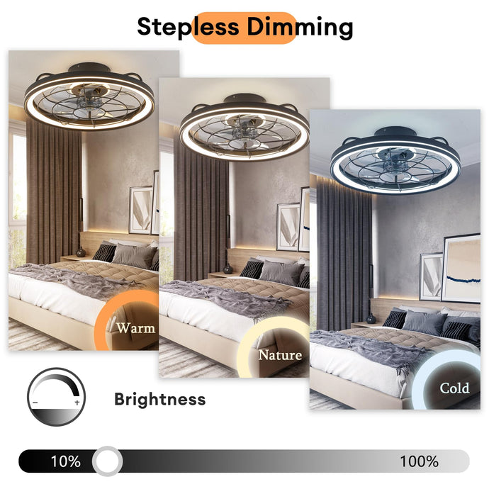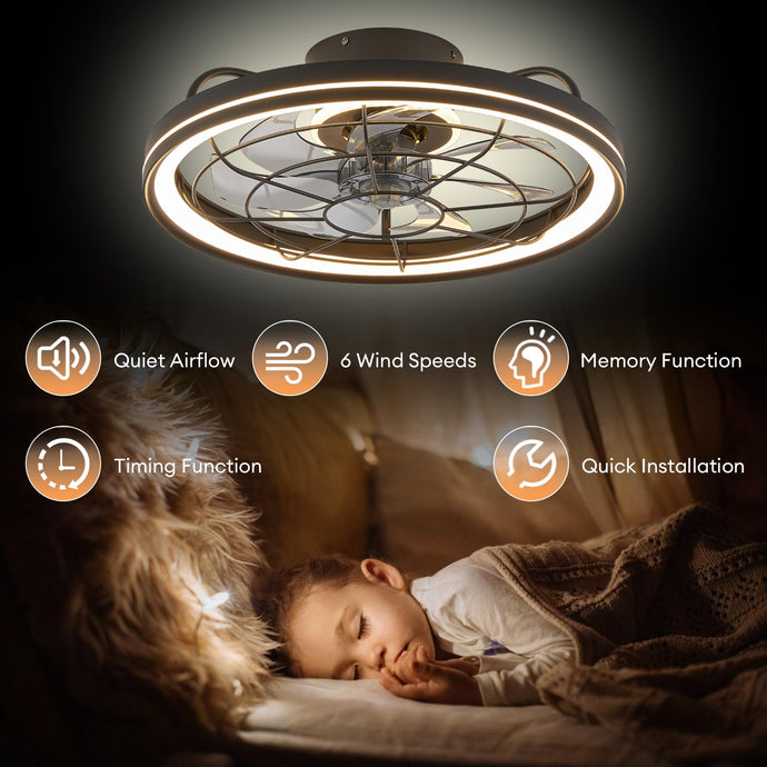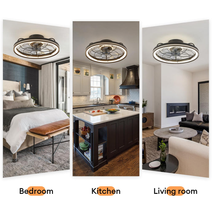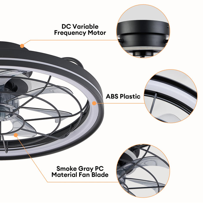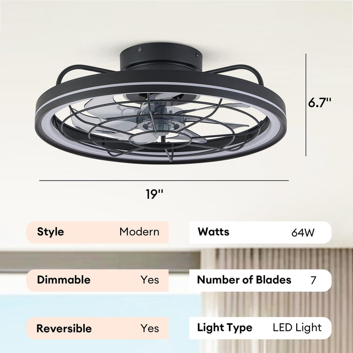 Modern 19 Inch Smart Indoor Black Low Profile Caged Ceiling Fan with LED Light with Remote Included