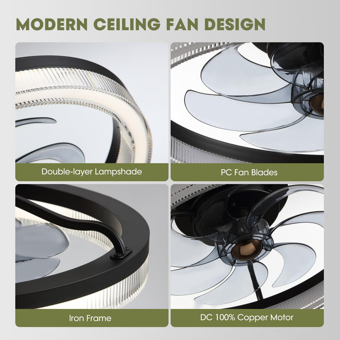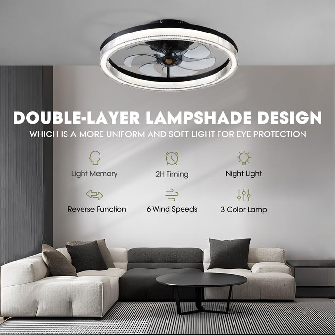 【2 in 1 Modern Design】The modern low profile ceiling fan has high quality LED light source and high transparent acrylic for higher light transmittance. Double-layer lampshade design, which is a more uniform and soft light for eye protection. Stylish outlooking design makes this ceiling fan a good home decoration.